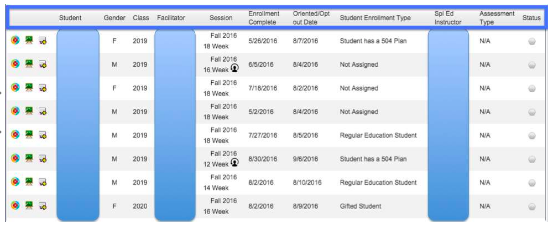 This data tells the teacher what kind of accommodations students have, as well as how long they are enrolled in the course. The teacher can see the data of all 12 week, 14 week, 16 week and 18 week long enrolled students and see if assignments are completed among these groups of students. There may be a difference in how an assignment is completed and the teacher can then make adjustments to any assignments to better differentiate. The teacher should then separate the data of students who have accommodations and see if they completed assignments. If those students were not able to complete the assignment to expectations perhaps the teacher needs to look at delivery and other methods to help those students achieve the expectations of assignments. Teachers that use data, like this chart have an advantage over others that don’t because they will be able to better accommodate all students and make their learning experience better.