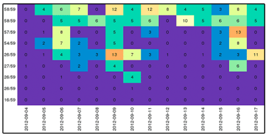 This chart gives information on how many assignments students have completed and how many tools they have used for a particular assignment. The teacher can use this data for future course by seeing how many tools were used and which ones were not. For example, For the first assignment, the tool(s) provided were not used at all. This data would tell the teacher to re-evaluate the assignment and the tool(s); are the tools useful to the assignment? Do the students need to use the tool? The teacher can also see the correlation between the grade on an assignment and tool usage; if a student can do well with out using a tool, then the tool is not useful and teacher needs to reevaluate both the assignment and tools. This data is very useful in online instruction because the teacher can have an up to date understanding why a student is doing well or not doing well in the course; the teacher would be able to provide proper feedback to each student based on this data. A teacher who uses this data has a distinct advantage over teachers who do not because they will be able to communicate better with parents and students, as well as make changes to assignment and tools to make the course better.
