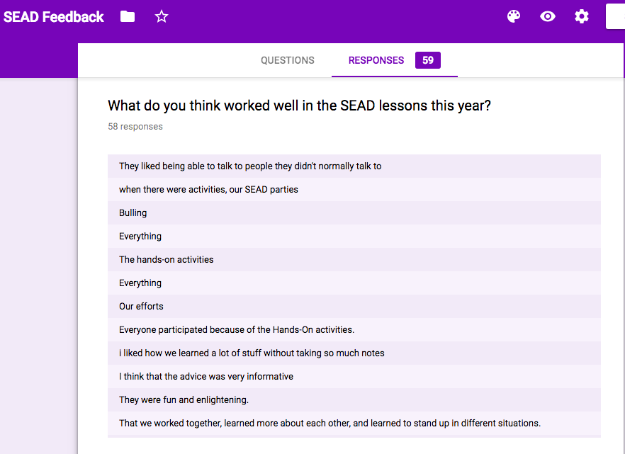 Below is an example of feedback I ask from my students. After introducing a new tool to the class and after every Unit I liked to get feedback from students to see what they liked and what they didn’t like. I like to use Google forms with this type of feedback because it allows me to gauge my students preferences and what tools are useful (either digital or not) and which ones are not.